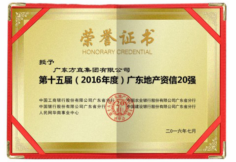 熱烈祝賀方直連續3年蟬聯廣東地產資信20強殊榮