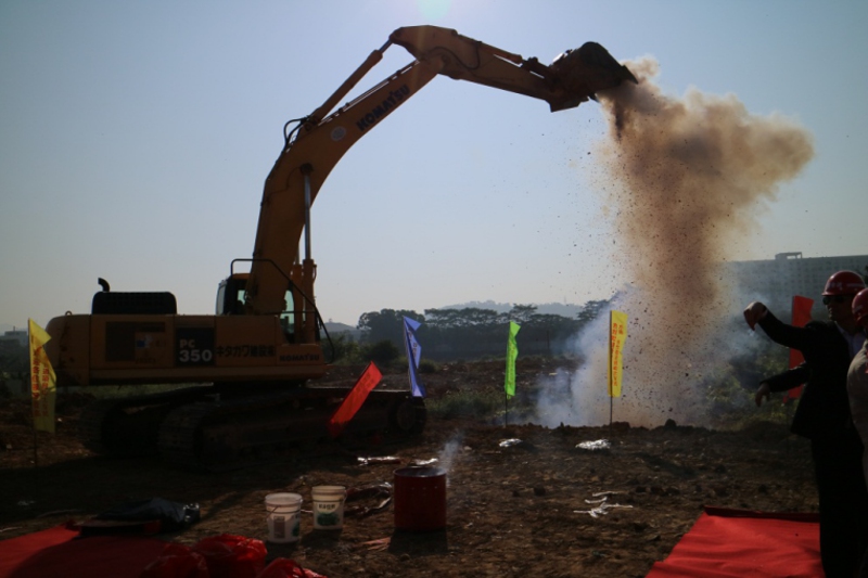 拜祭完成后,陳董、馬輝總等領導們齊心協力切開金豬,動土儀式圓滿完成。