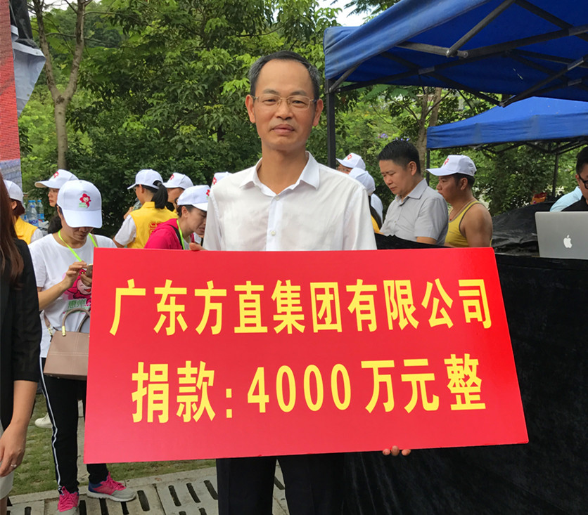 當市委書記、市人大常委會主任陳奕威接受第二批愛心企業捐款時,氣氛達到最熱烈,臺下響起熱烈掌聲——廣東方直集團有限公司捐贈4000萬元!