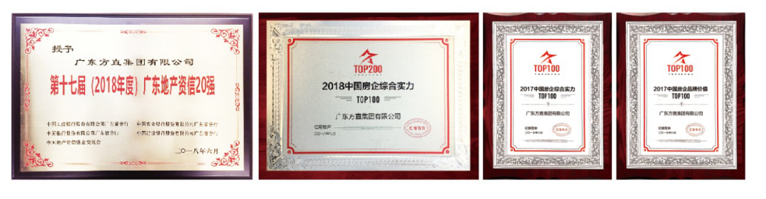 憑借誠實守信、持續創新、穩健的資本運作能力,方直集團贏得了行業和資本的認可和贊許。2014-2018年,方直集團連續五年蟬聯“廣東地產資信20強”。 2018年,更是憑借著穩步提升的綜合實力,榮列“2018中國房企綜合實力TOP100、2018中國房企品牌價值TOP100”榜單。