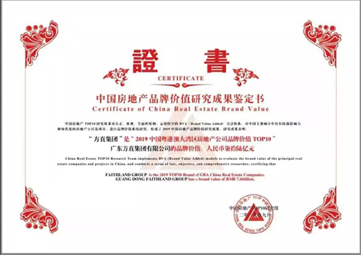 在此次研究中,方直集團榮膺“2019中國粵港澳大灣區房地產公司品牌價值TOP10”,這是對企業近年來快速發展的重要印證,也反映了企業品牌影響力的快速提升。