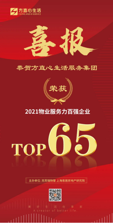 峰會上重磅發布“克而瑞2021年度物業服務力系列研究成果”,方直心生活憑借品質服務榮膺“2021物業服務力百強企業TOP65”。
