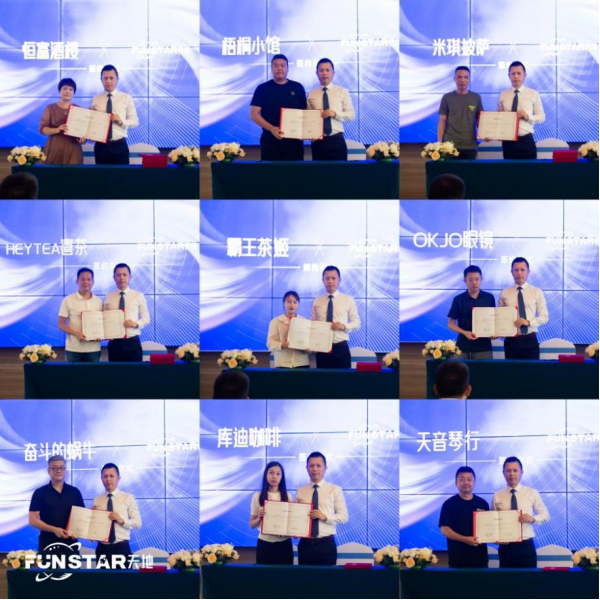 2023年4月20日下午,方直FUN STAR天地品牌簽約會“向未來?共生長”在方直亞汀酒店6樓宴會廳隆重舉行!恒富酒樓、喜茶、霸王茶姬、OKJO眼鏡、奮斗的蝸牛、庫迪咖啡、天音琴行、梧桐小館、米琪披薩共9家品牌強勢簽約入駐方直FUN STAR天地,共同見證方直商業邁上新臺階的歷史性時刻,共助方直FUN STAR天地品牌戰略、業態結構進一步優化升級!