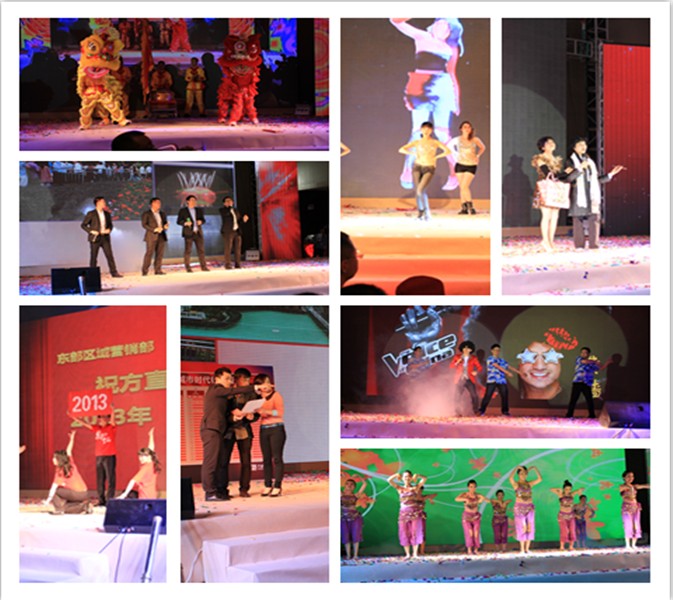 晚會主要分三部分進行,第一部分為祝酒環節,陳董以及方直各位高管同舉杯,隨著體現陳董創業漫畫的展播,方直集團2013年迎春晚會正式開始!