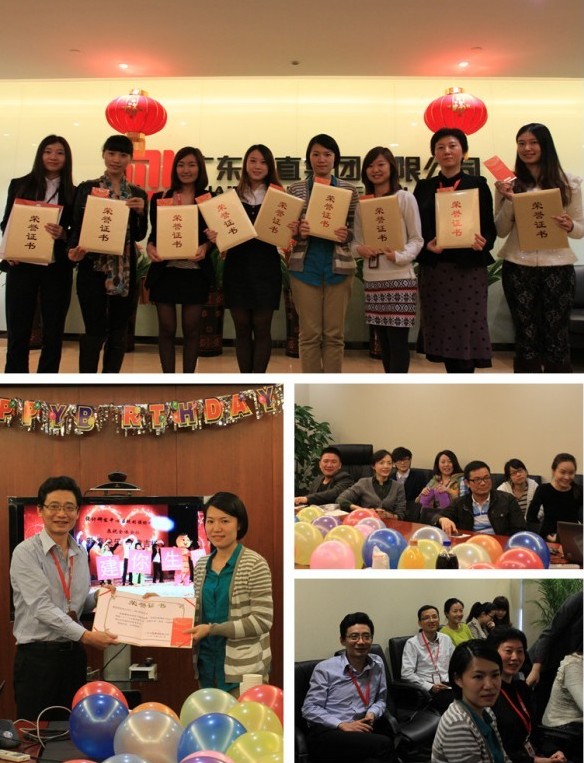 2013年3月1日,集團“新突破,心跨越”2013迎新年會迎來最后一道晚會大餐——“我最喜歡的年會節目”頒獎儀式,各節目代表、一二月壽星共享了這一歡樂時刻。《設計·思》《夢幻艷波》《舞動方直》等九個員工節目參與了本次年會的演出,為晚會增添亮色。組委會在OA上專為此次年會員工節目設立了調查發動全員票選“我最喜歡的年會節目”,共收到253票,其中《設計·思》取得55票獨占鰲頭摘取“突破大獎”,《夢幻艷波》《舞動方直》分別以47票、43票緊跟其后,同獲“最受觀眾歡迎獎”。